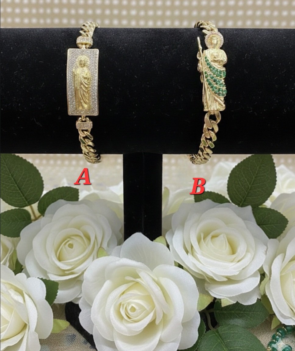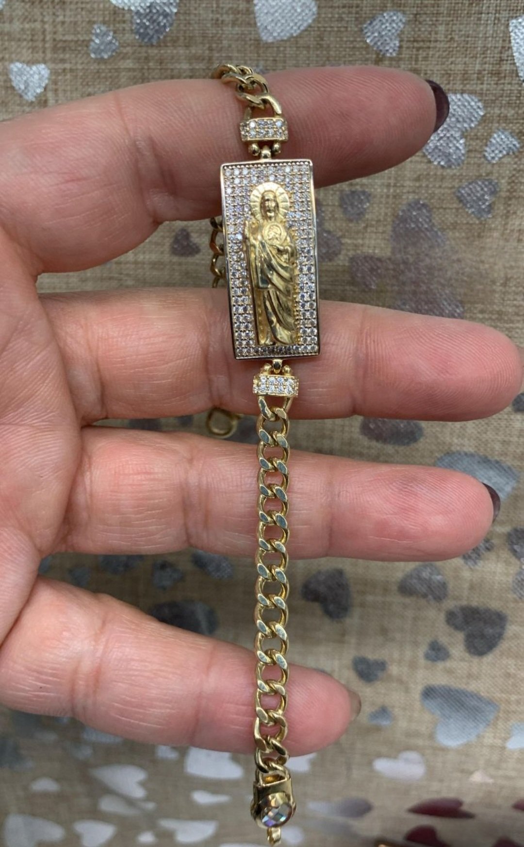 Pulseras san judas 14k oro con piedras zerconia de colores